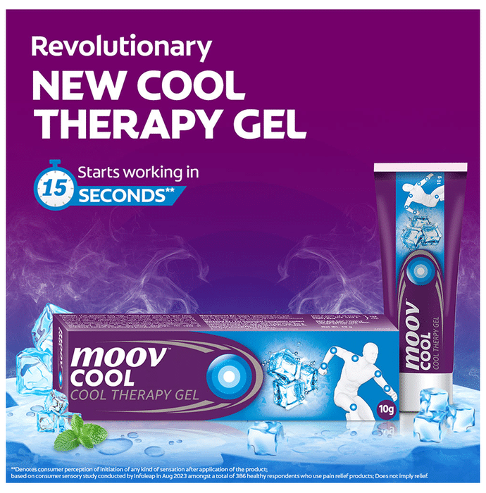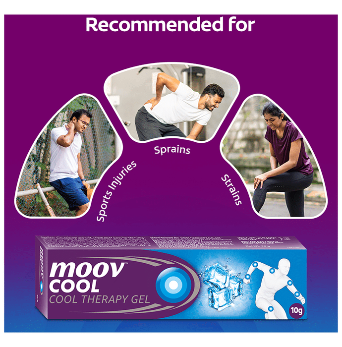 Min order 100/- & Free ShippingMoov Cool Therapy Gel is a revolutionary new Cold Therapy spray for body pain relief, sports injuries, sprains, and strains often need cooling/icing to heal. Moov Cool provides ice-like cooling sensation without any ice! Simply apply Moov Cool 3-4 times a day on the affected area to cool the pain. Moov Cool is made from natural ingredients and safe to use. It is a proprietary Ayurvedic formulation designed to help with symptomatic relief from pain caused by sports injuries, muscle soreness, sprains, and strains. It contains 100% natural active ingredients, including Menthol, known for its cooling properties. The gel offers an ice-like cooling effect, providing comfort and relief quickly. With a non-greasy formula, it starts working within seconds and is recommended for individuals seeking fast and effective cooling for injuries that typically require icing. Its convenient gel form ensures ease of application, making it ideal for on-the-go use.