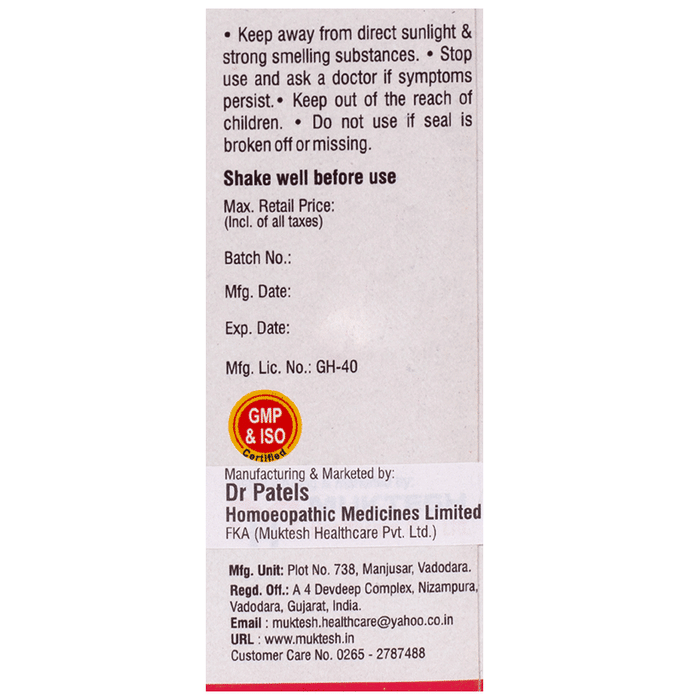 | Manufacturer | Dr Patels Homeopathic Medicines Limited |